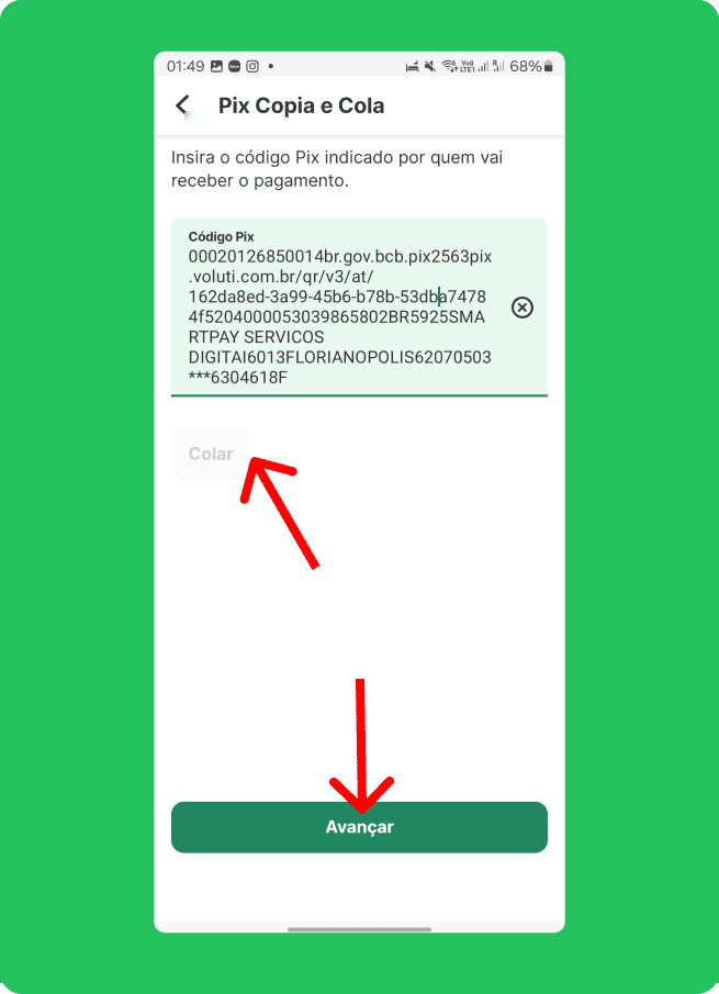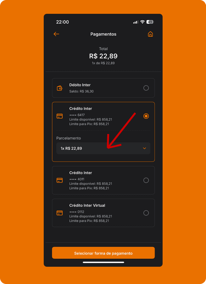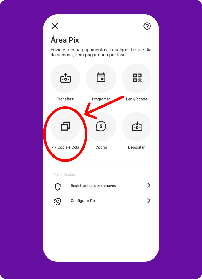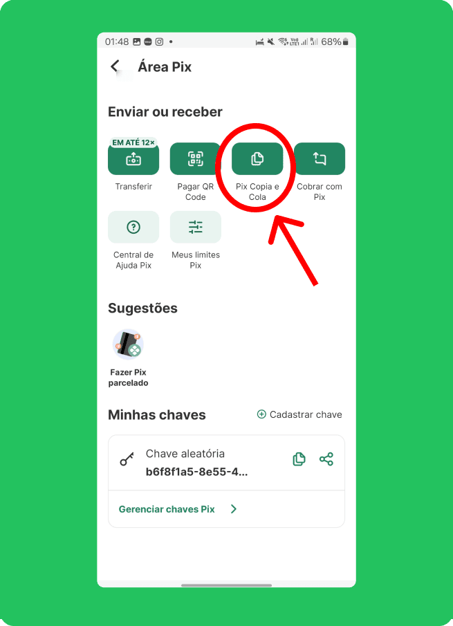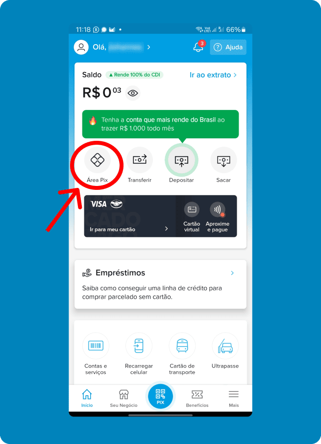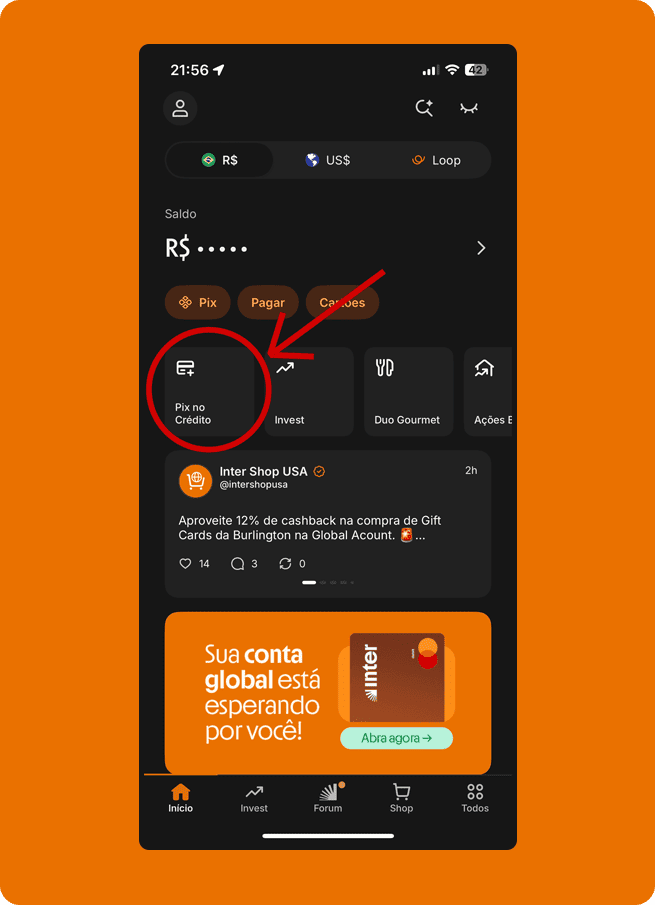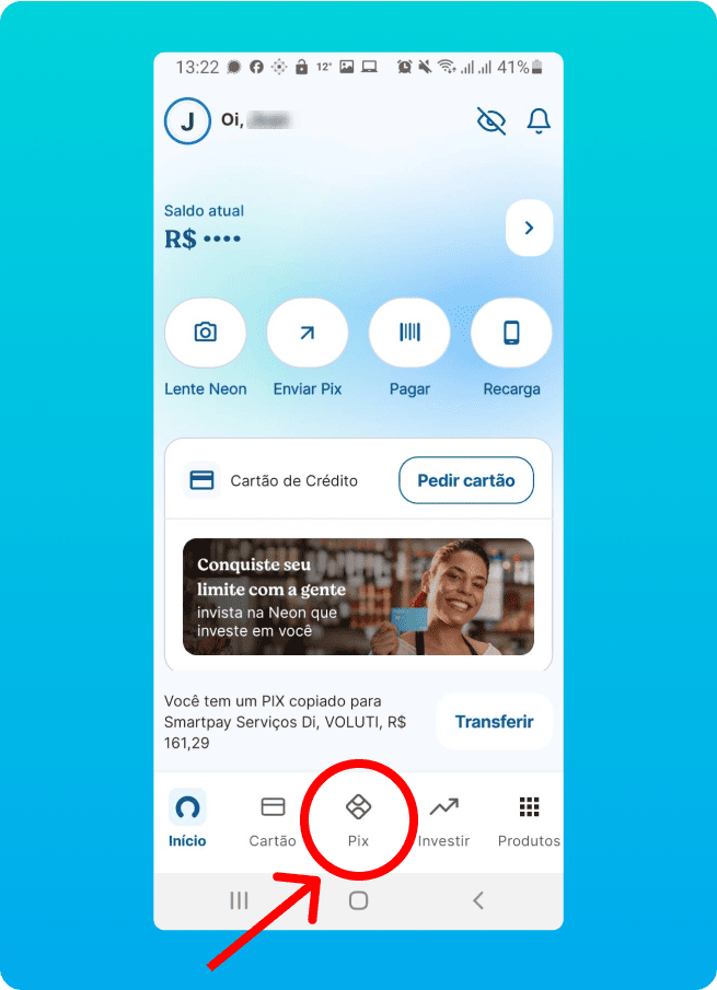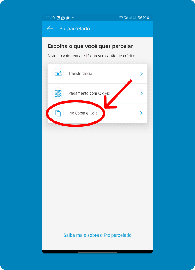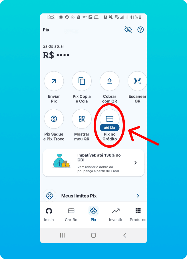 Clique no aplicativo do seu banco e veja como realizar o pagamento via PIX no Cartão de Crédito.